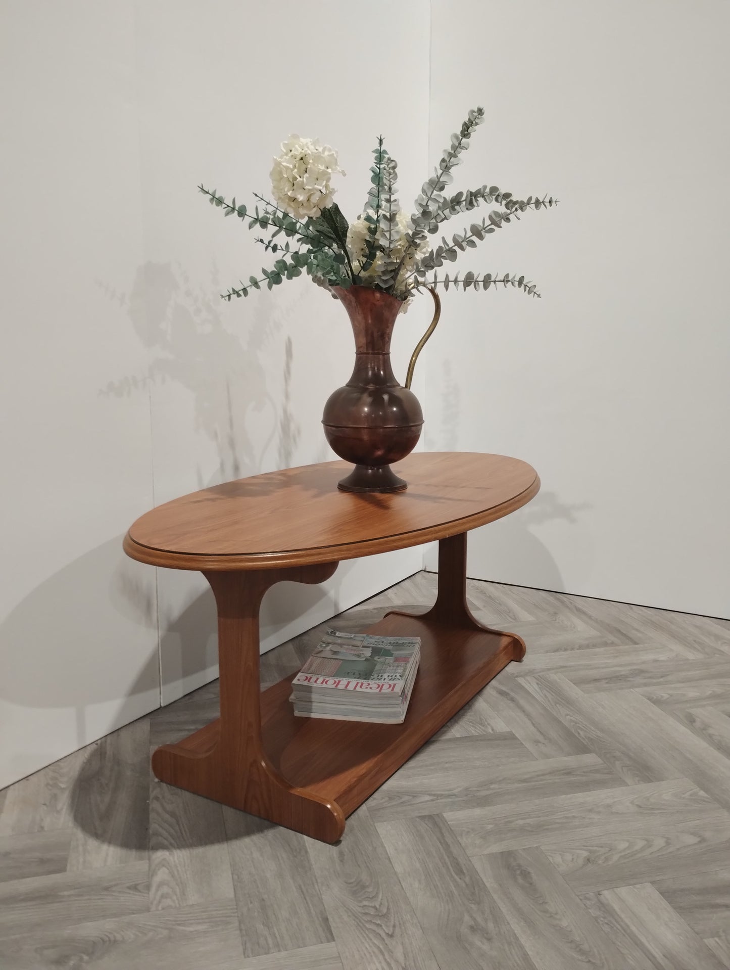 Elegant oval veneered wood effect coffee table ideal for a moderate-sized living room. Minor blemishes visible, please refer to included images.